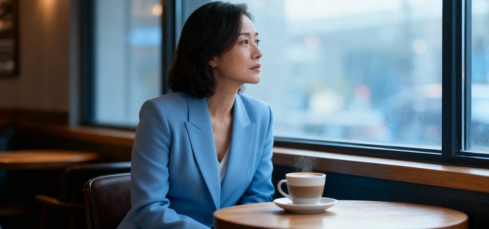 她把杯子往前推了推,像是推開一段她還來不及消化的心事……