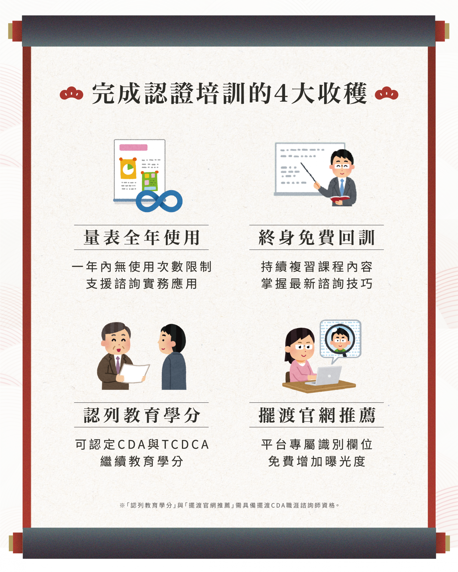 ✅ 參與課程可認定NCDA、台灣生涯發展與諮詢學會繼續教育學分