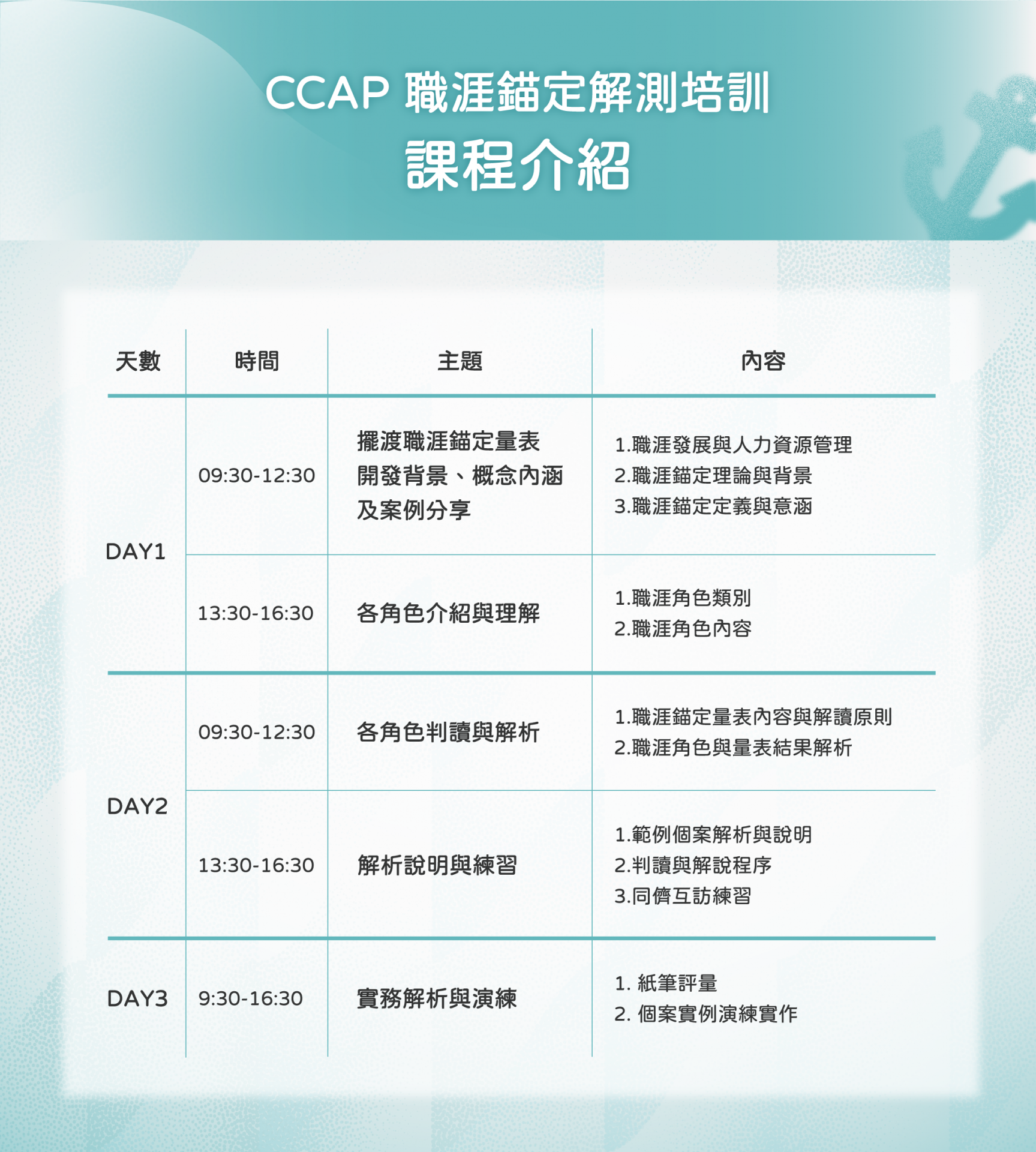 ✅ 參與課程可認定NCDA、台灣生涯發展與諮詢學會繼續教育學分