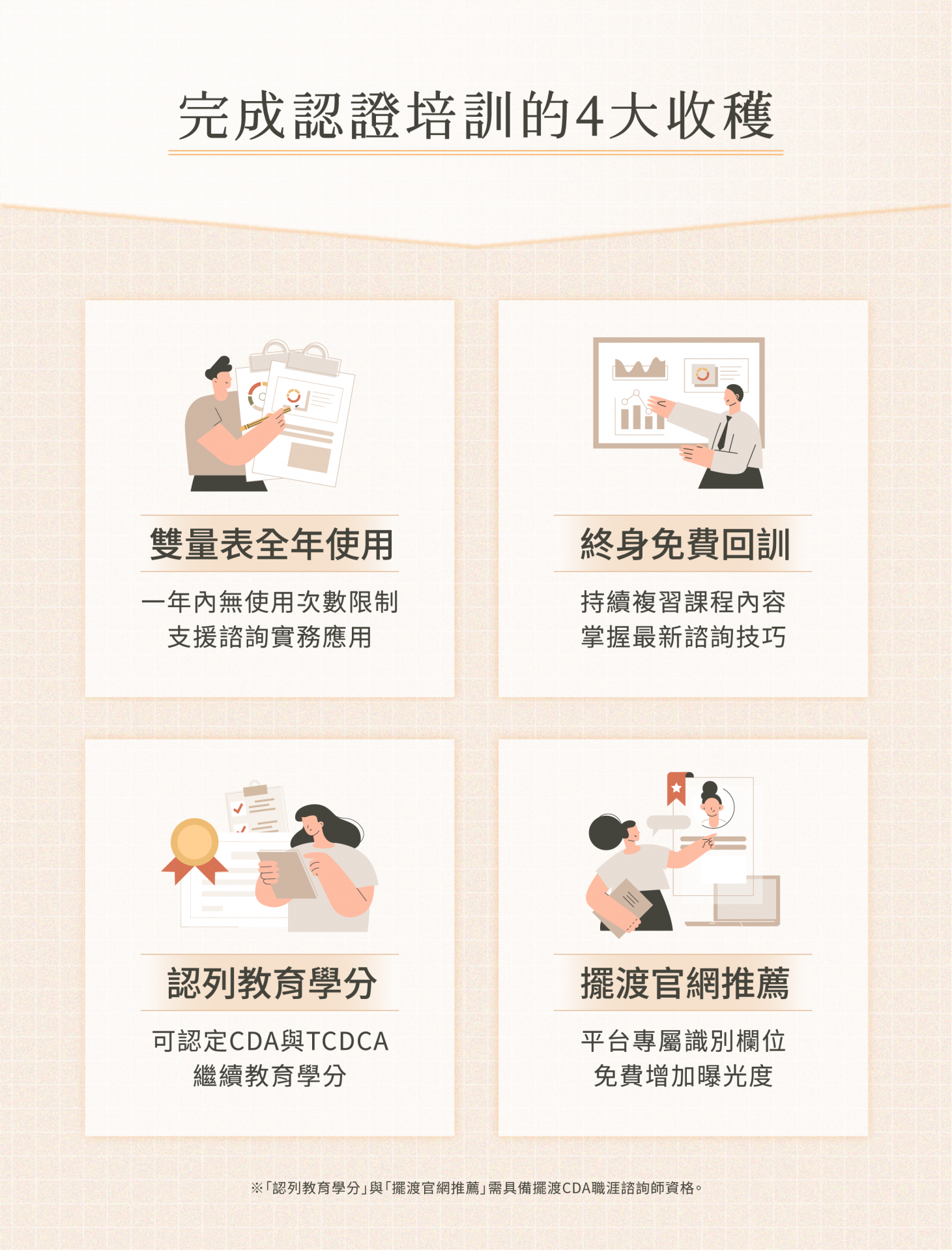 ✅ 參與課程可認定NCDA、台灣生涯發展與諮詢學會繼續教育學分