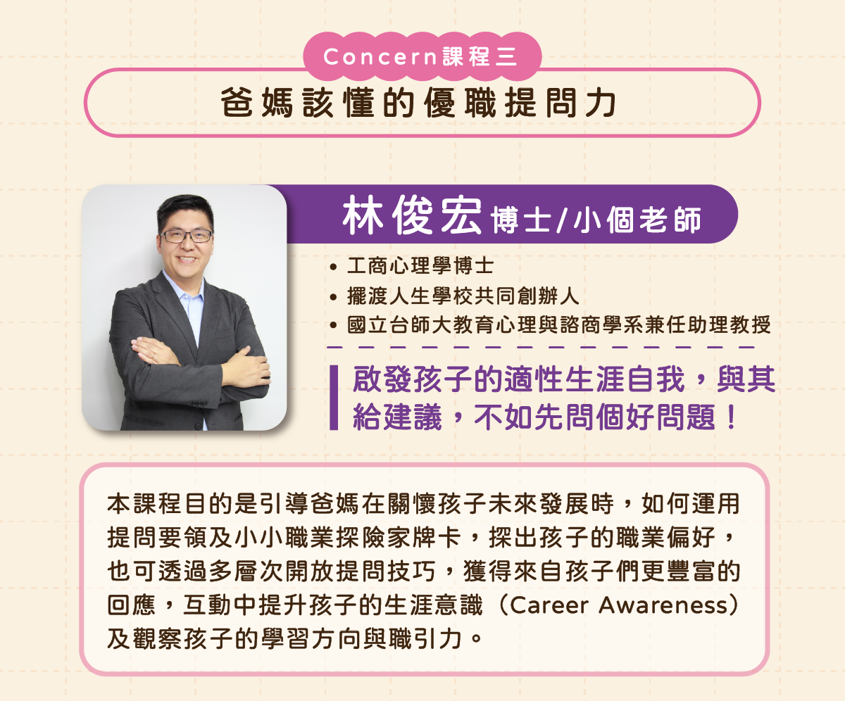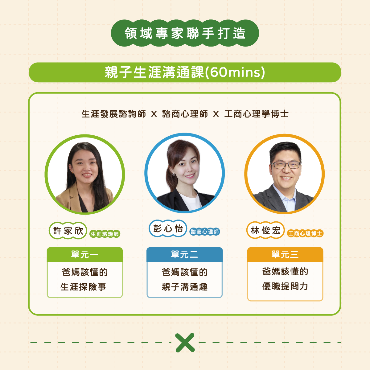 【3C親子生涯溝通線上課程,三位專家讓您關心孩子生涯沒煩惱】
